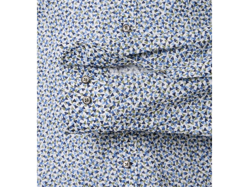 Hezký, drobný vzor v modro-zelené kombinaci na bílém podkladu.