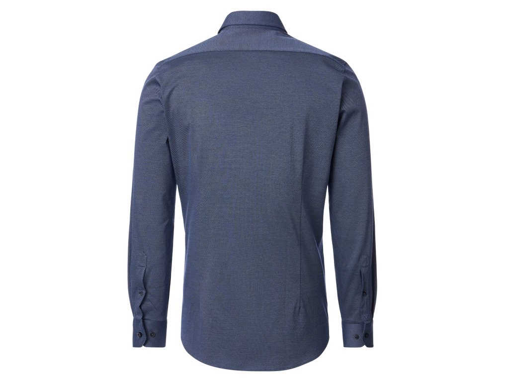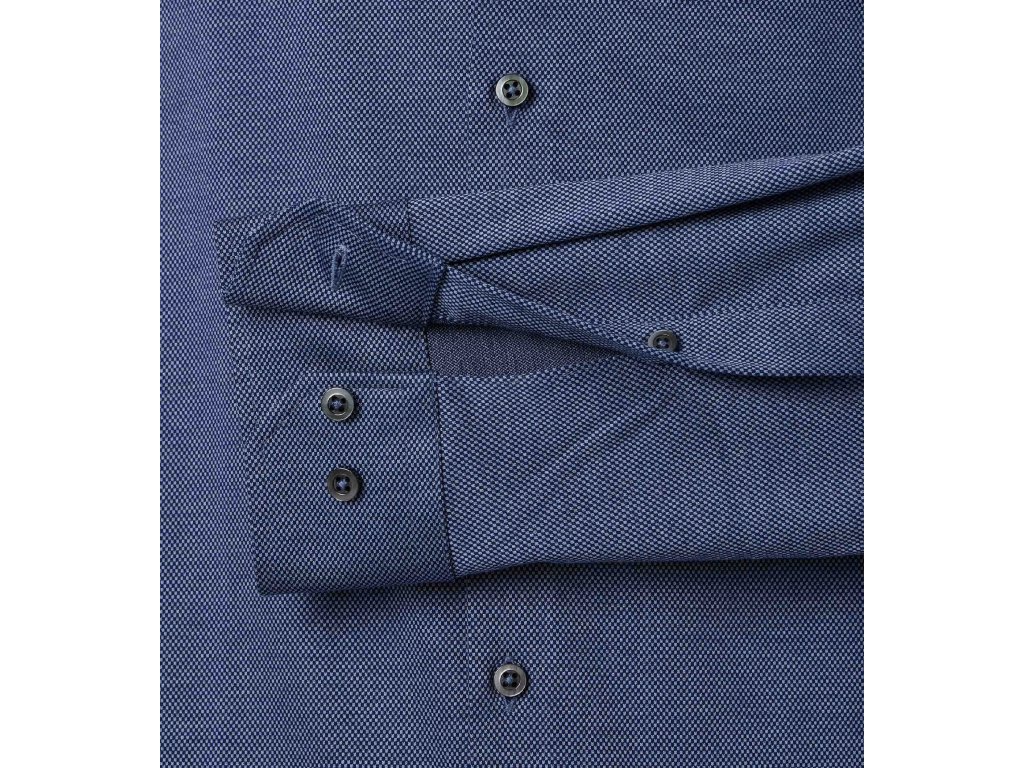 Košile je jednobarevná, modrá s jemným vzorečkem - struktura látky.