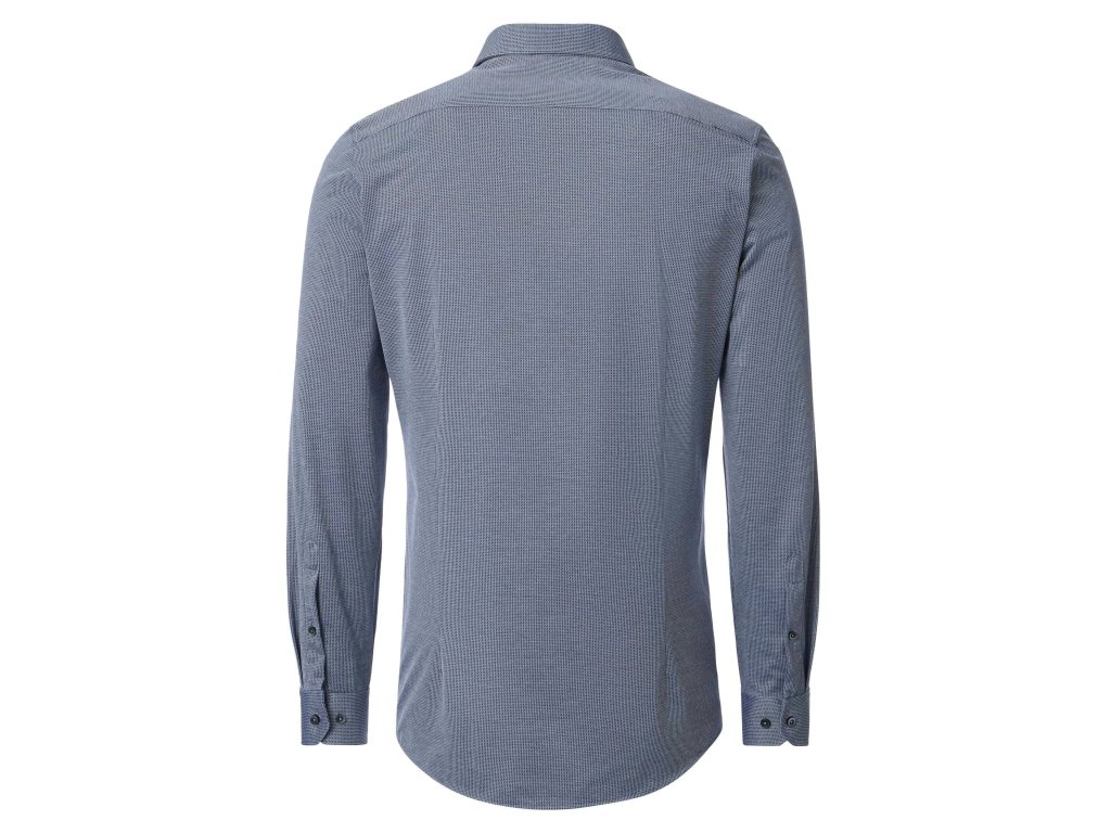 Modrá barva s velmi jemným vzorem. Sportovně elegantní košile, vhodná jak k džínům, tak ke kahotům a saku.