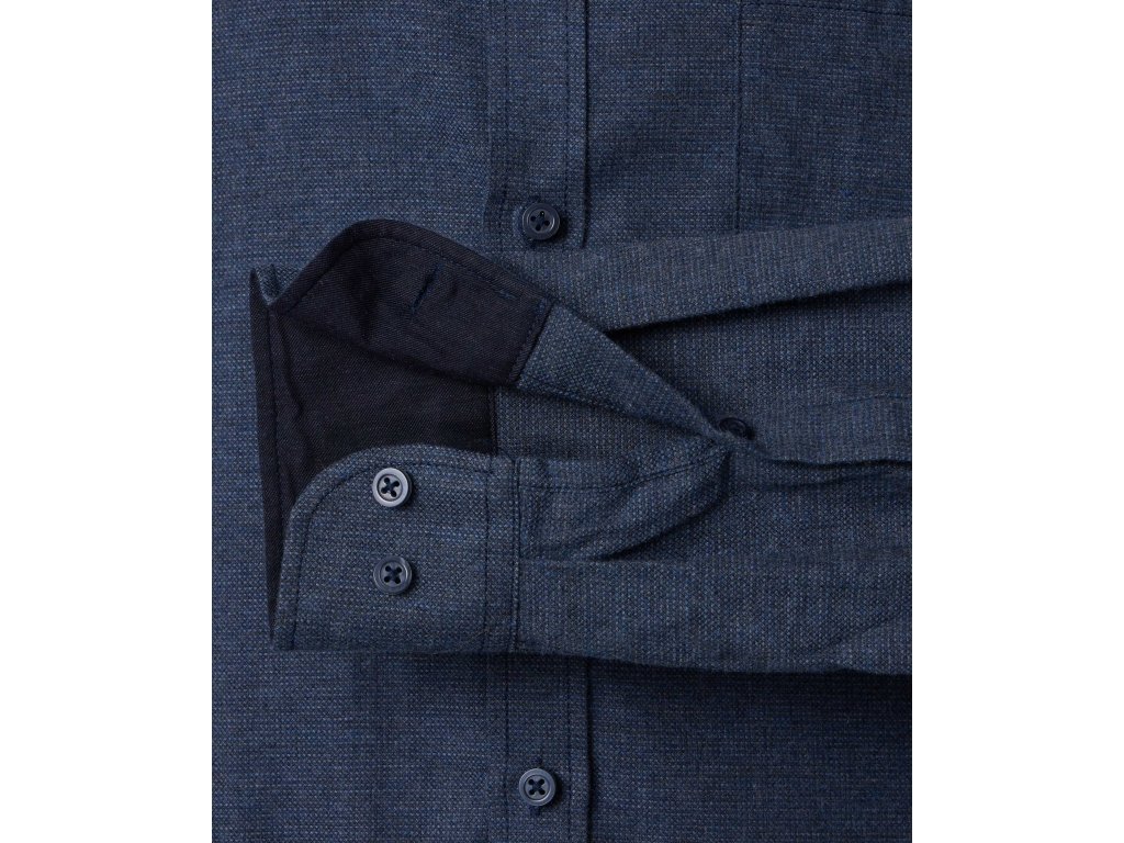 Košile je jednobarevná, modrá barva.