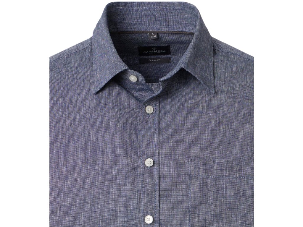 Casa moda pánská košile jednobarevná - modrá barva. Košile v klasickém střihu - Casual fit, košile bez vyštíhlení, rovný střih.