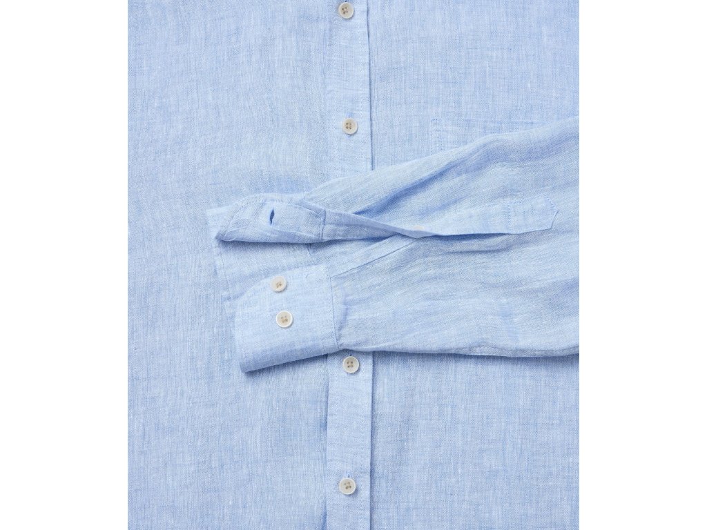 Casa moda pánská jednobarevná lněná košile ve světle modré barvě.
