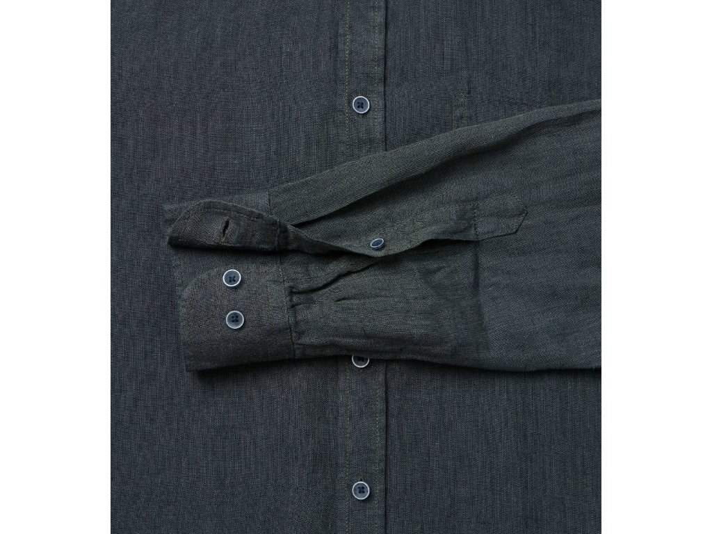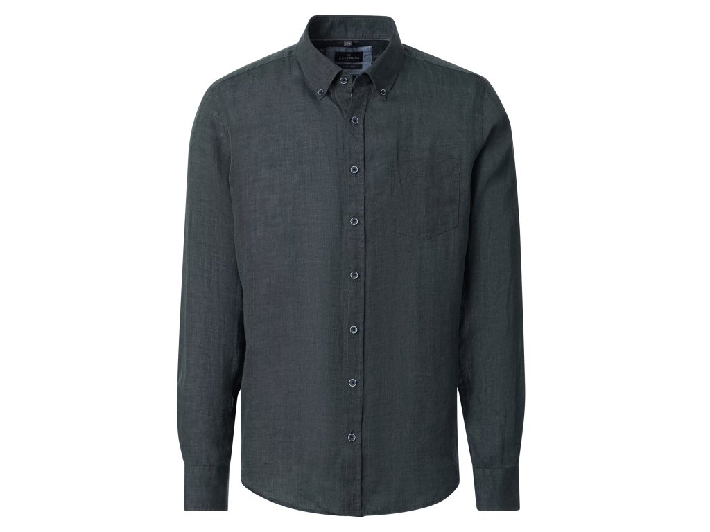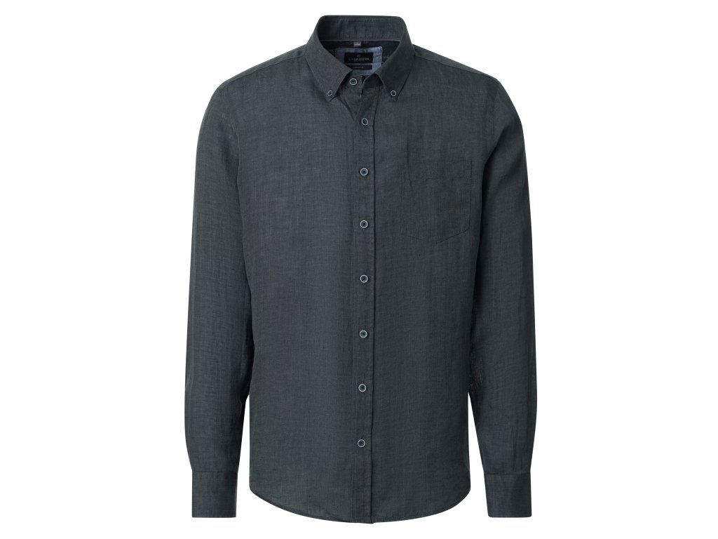 Casa moda pánská jednobarevná lněná košile temně zelená barva, lahvově zelená.
