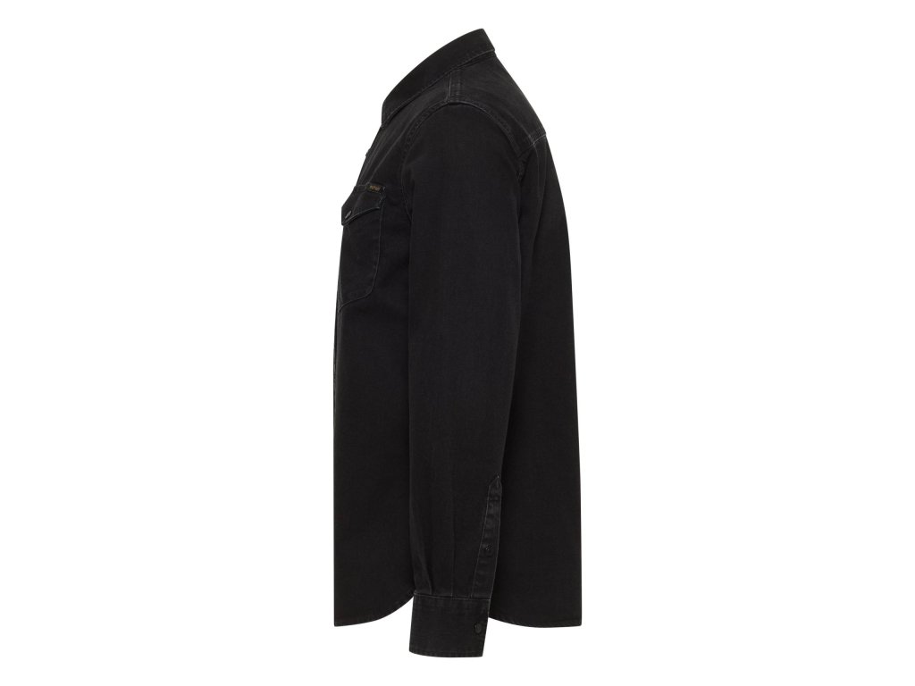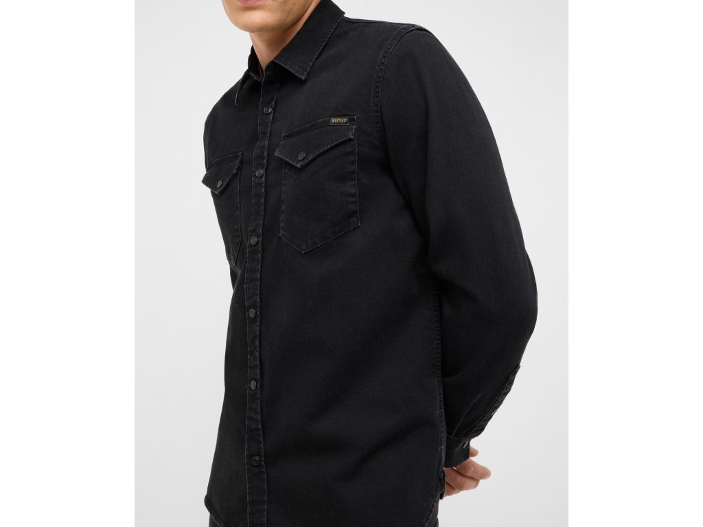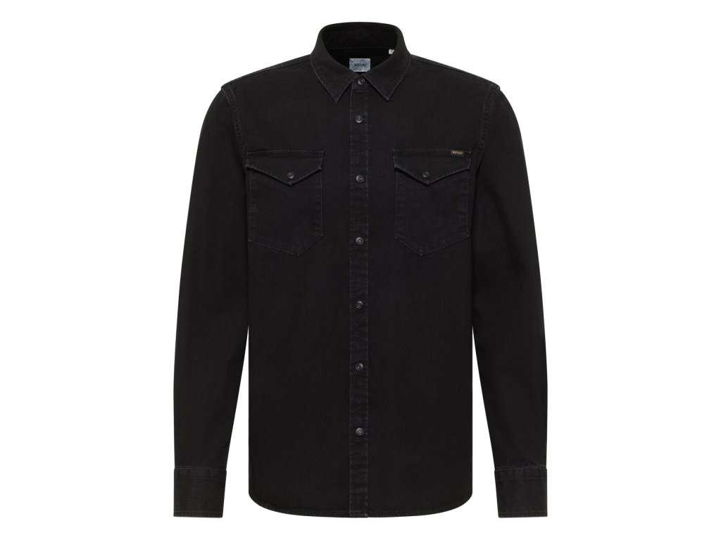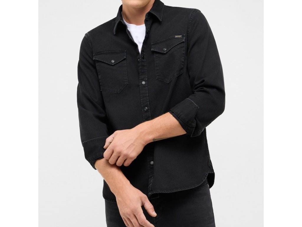 Našívané náprsní kapsy, límec Kent a zapínání na druky.