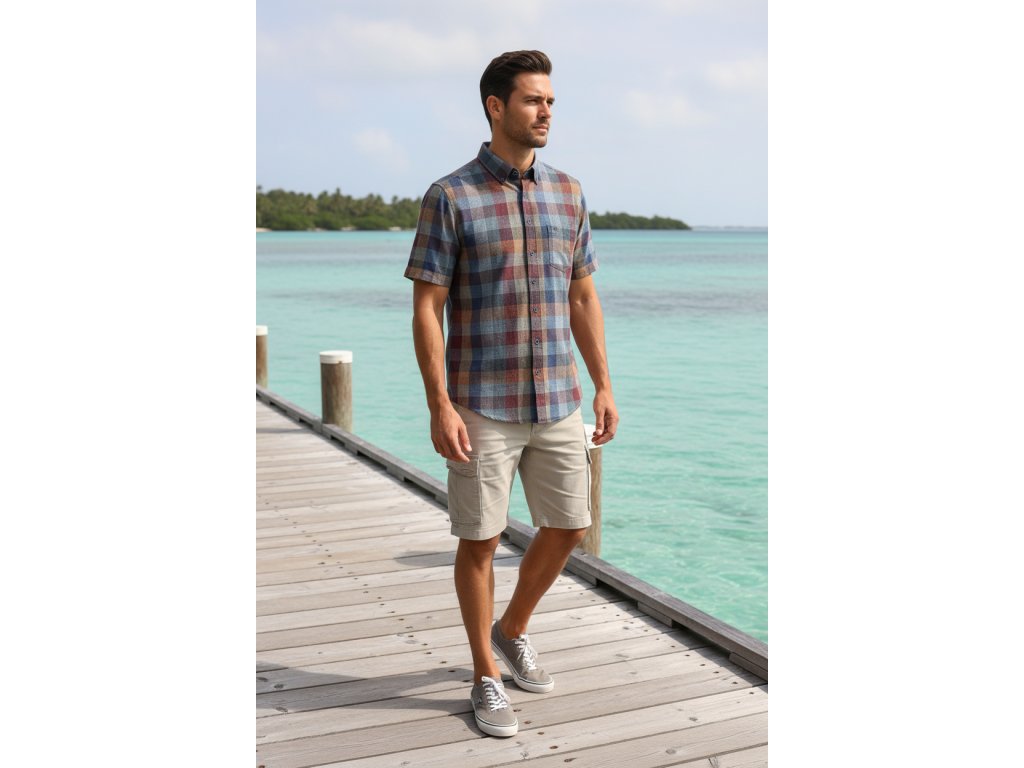 Casa moda pánská letní košile s krátkým rukávem, košile je velmi příjemná - směs bavln, len.