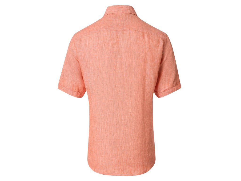 Košile je jednobarevná, lososová barva.