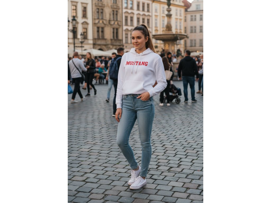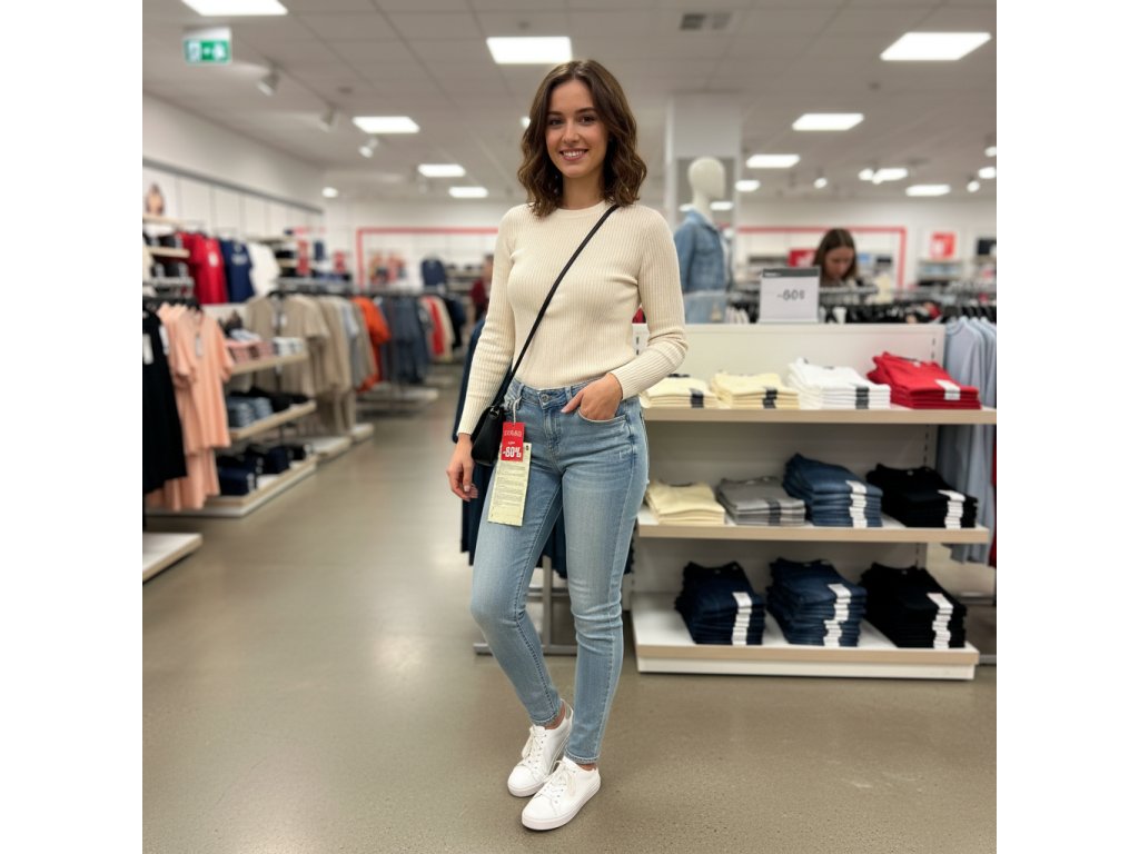 Dámské džíny Mustang ve střihu Indiana, nízký pas a úzké nohavice. Hodně světlá barva s vydřením, džíny jsou pevnější.