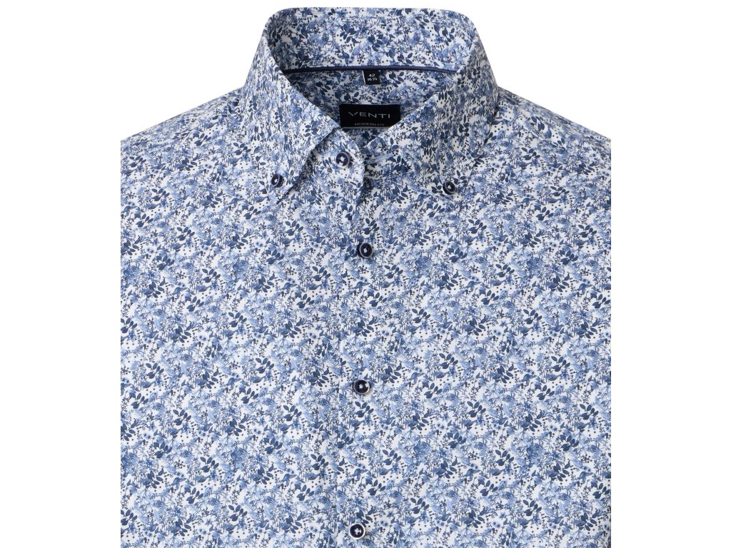 Venti pánská košile modro-bílá, vzor jemných kytek, velmi nenápadný. Sportovně elegantní košile.