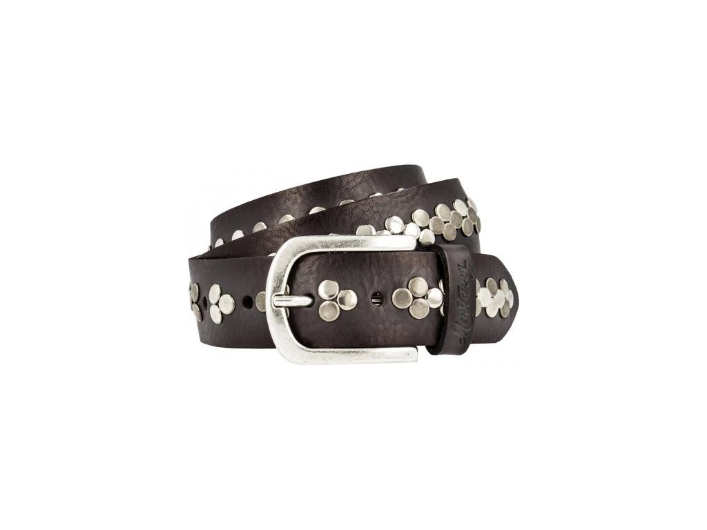 Kožený pásek Mustang zdobený cvoky se stříbrnou sponou.