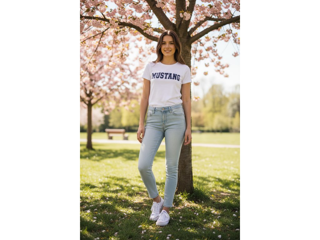 Dámské džíny Mustang ve střihu Gina Skinny rifle s nízkým pasem a úzkou nohavicí.