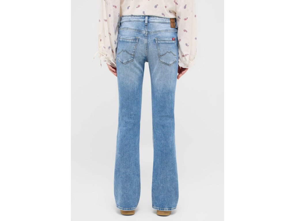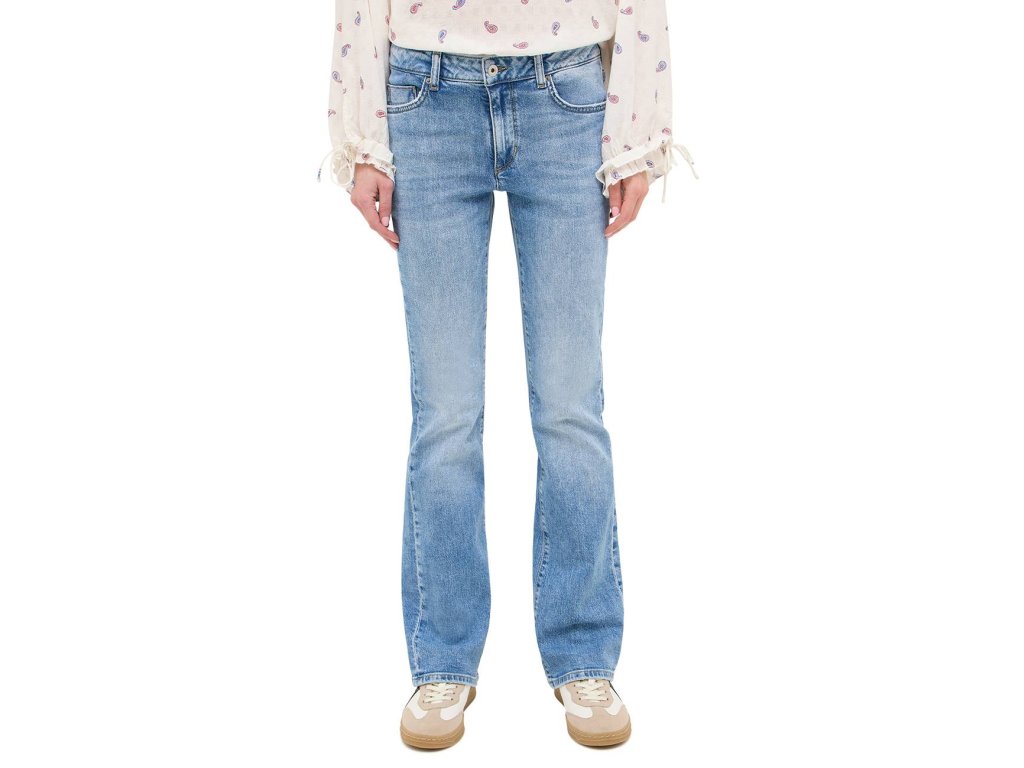 Dámské džíny ve střihu Shelby Slim Boot, dobře padnoucí rifle. Středně vysoký pas a rovná - dole rozšířená nohavice.