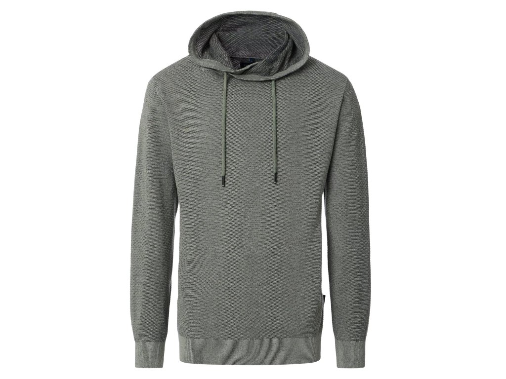 Casa moda sportovně elegantní pánský svetr přes hlavu s kapucí, šňůrky na stáhnutí kapuce kolem krku.