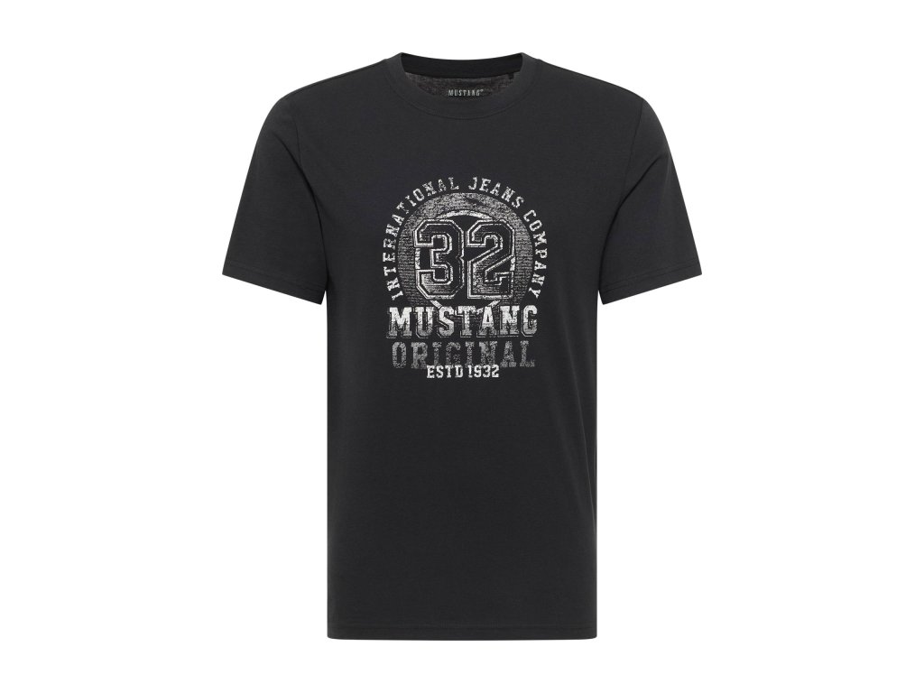 Mustang pánské tričko v černé barvě s bílým potiskem, tričko v klasickém volném střihu - regular fit.