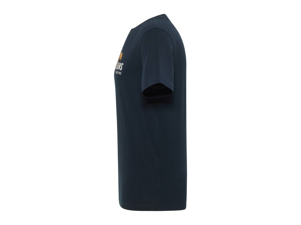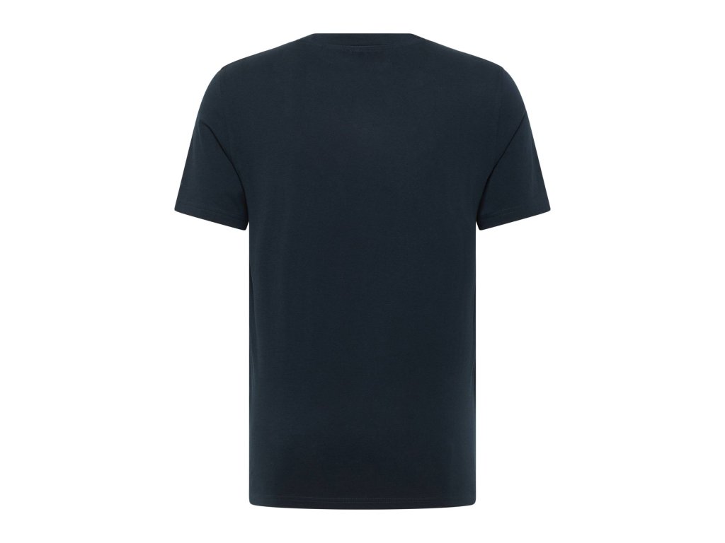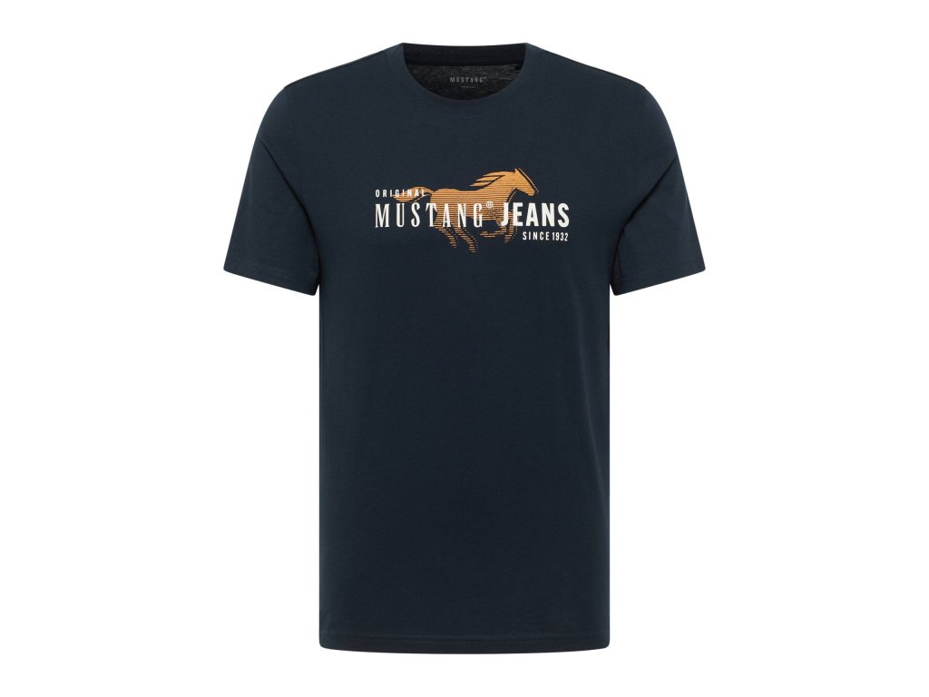 Mustang pánské tričko v klasickém střihu, bavlněné tričko v modré barvě - námořnická modrá s výrazným, ale decentním potiskem.