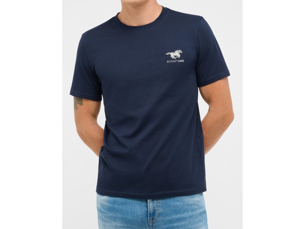 Mustang pánské tričko s krátkým rukávem, tričko v modré barvě s decentním logem koně a malým nápisem.