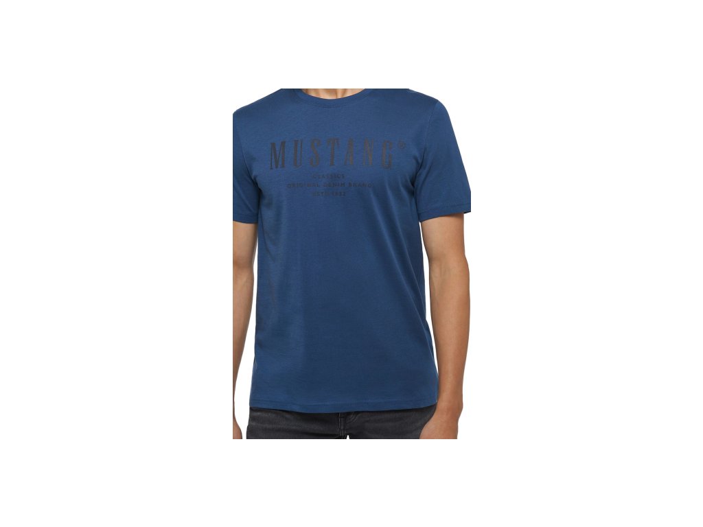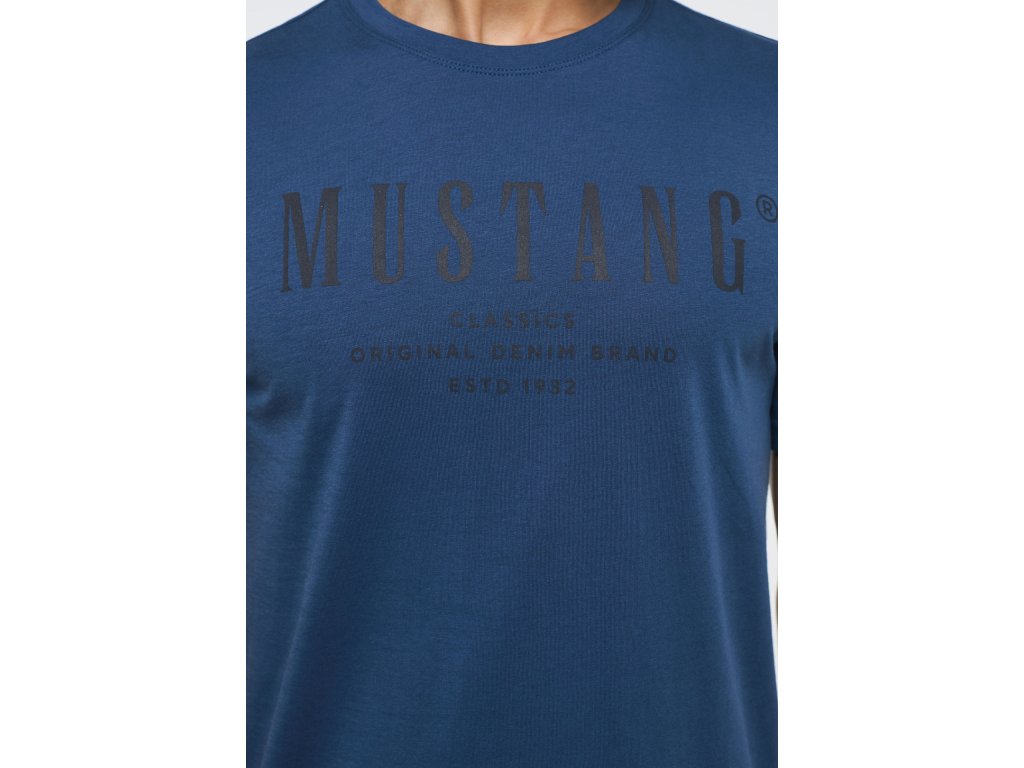 Pánské tričko Mustang s krátkým rukávem, tričko v modré barvě s černým nápisem.