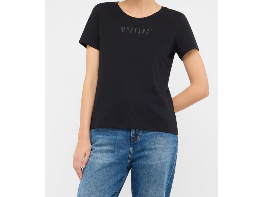 Super kousek ..... dámské tričko s krátkým rukávem, černá barva s decentním černým nápisem Mustang.