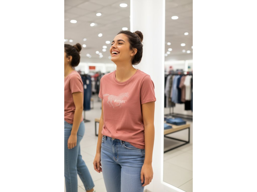 Tričko ve starorůžové barvě s nenápadným, jemným potiskem koně.